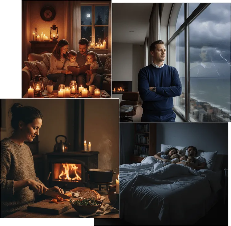 No. This is practical, real-world blackout preparation — the kind that helped families during Hurricane Helene, the Texas freeze, and California outages. No bunkers, no lifestyle change.