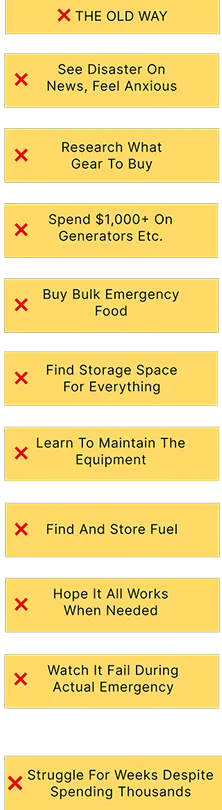 Without spending thousands on generators, becoming a "prepper," or filling your garage with expensive gear that breaks down when you need it most.